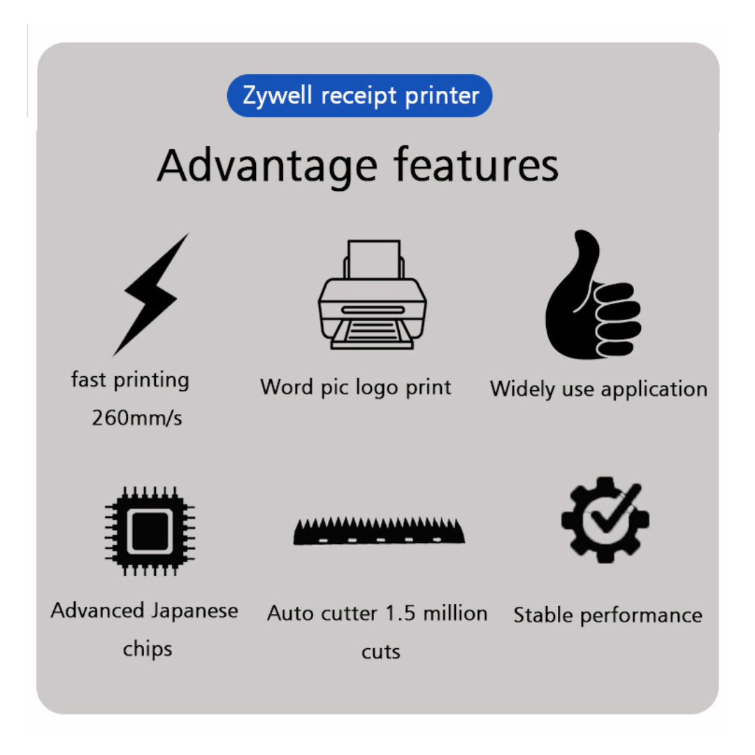 - Fast printing speed up to 260mm/s for efficient transaction handling.